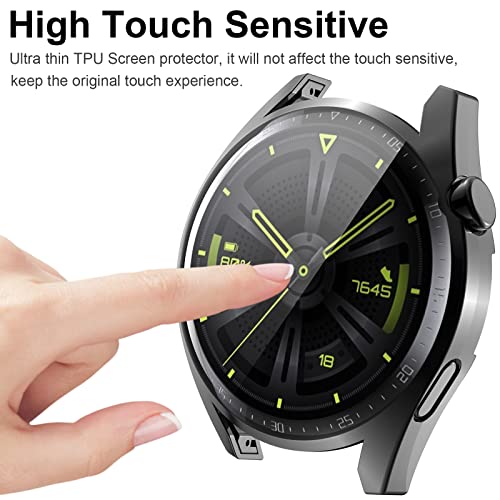 Miimall - جراب من ميمال مقاس 42 ملم - 46 واقي شاشة البولي يوريثين المقاوم للحرارة ناعم للغاية وعالي الدقة وممتص للصدمات وغطاء واق بالكامل ومقاوم لساعة هواوي GT3 - بلون أسود تي بي يو