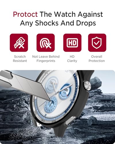 Miimall - جراب لساعة هواوي GT5، مضاد للخدش والصدمات، شاشة حماية لساعة هواوي GT5 + غطاء من البولي كربونات، زجاج مقوى بدرجة صلابة 9H، جراب حماية كامل لساعة هواوي GT5 مقاس 46 ملم - لون أسود