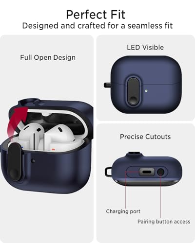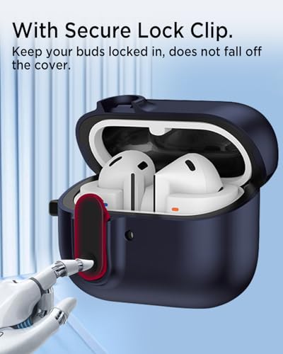 Miimall - جراب حماية لسماعات سامسونج جالاكسي بادز 3 FE / 3 برو/بودز 3 بقفل آمن وحلقة تثبيت وشحن لاسلكي، جراب حماية لسماعات الأذن متين مضاد للصدمات للرجال والنساء بلون أزرق من ميمول