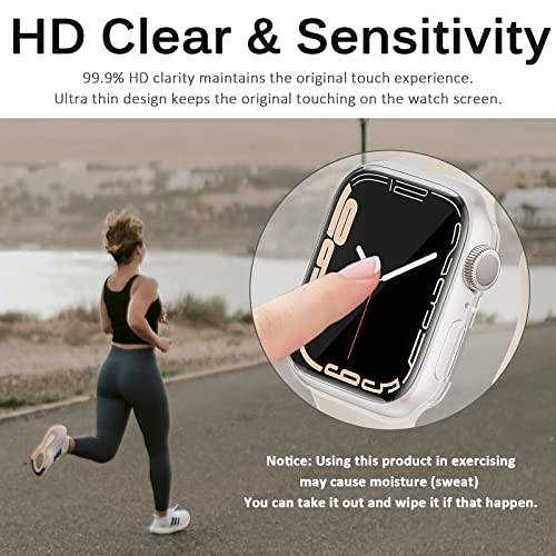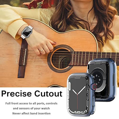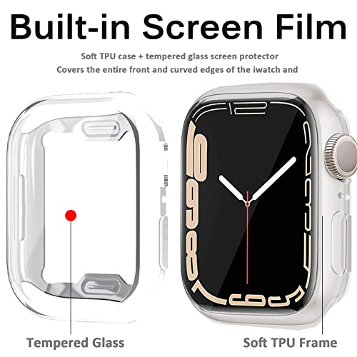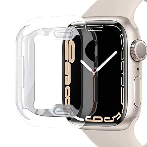 Miimall - ميي مول جراب متوافق مع ساعة ابل 8 41 ملم شاشة حماية ناعمة من البولي يوريثين الحراري خفيف الوزن واقي كامل مضاد للخدش والصدمات الزجاج المقوى لساعة اي ووتش - 7 شفاف