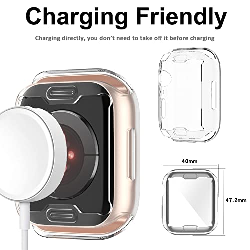 - [واقي شاشة مدمج] جراب ناعم من البولي يوريثين الحراري + واقي شاشة من الزجاج المقوى، يغطي هذا الجراب الحواف الأمامية والمنحنية بالكامل لساعة اي ووتش ويوفر حماية شاملة لساعتك ضد الخدوش والسقوط والصدمات.