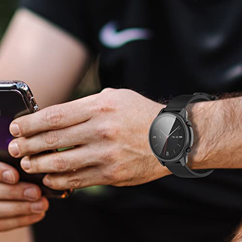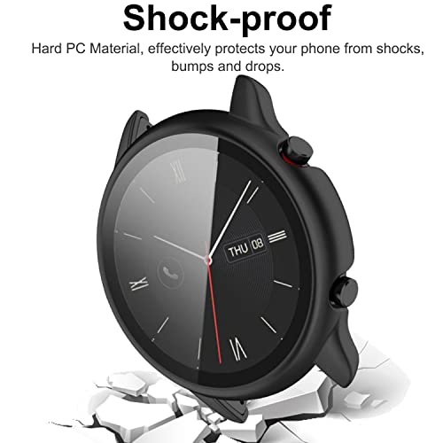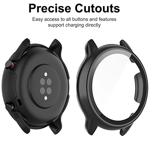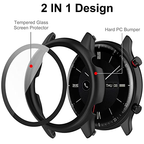 Miimall - جراب حماية كاملة رفيع للغاية من البولي كربونات مقاوم للخدش مع شاشة الزجاج لساعة اميزفيت GTR 2-2e ميمول - اسود زجاج صلب لساعات ذكية
