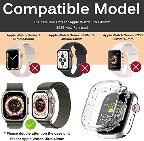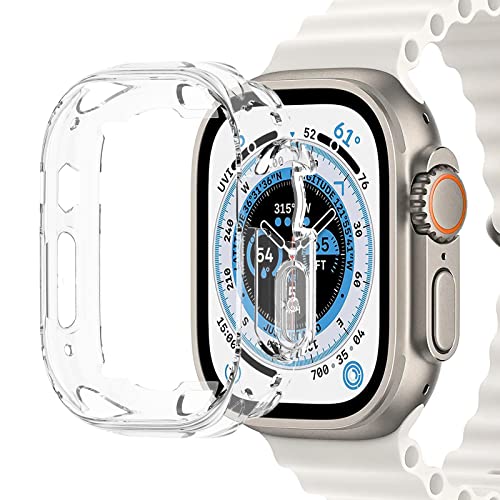 Miimall - جراب حماية لساعة آبل الترا مقاس 49 ملم من ميي مول ناعم بولي يوريثين مقاوم للحرارة مع شاشة لحماية كاملة مضاد للخدش ومقاوم للصدمات سلسلة 8 شفاف لساعات ذكية