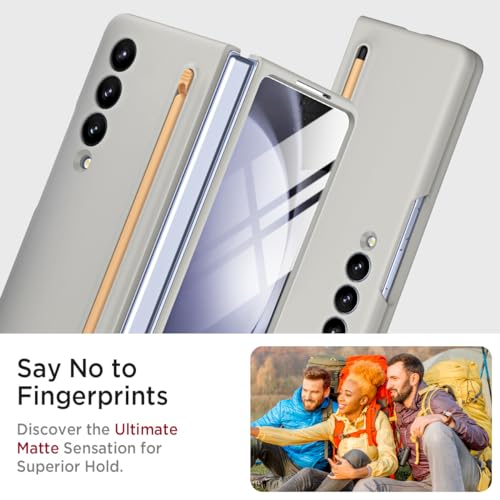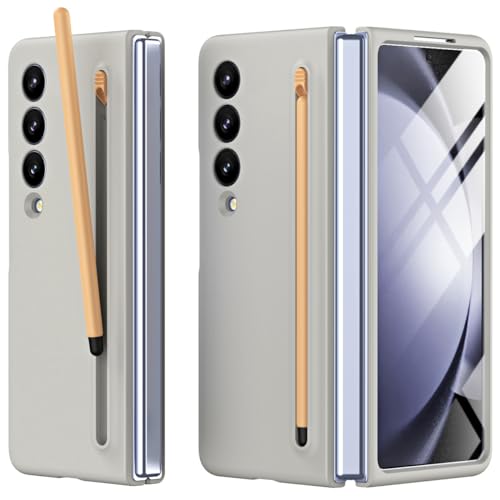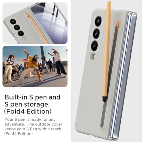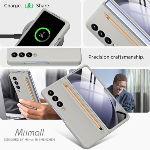 Miimall - ميي مول جراب حماية متوافق مع سامسونج جالاكسي Z فولد 4 [يتضمن قلم S] [واقي شاشة زجاجي مدمج] رفيع مضاد للصدمات بتغطية كاملة من البولي كربونات لهاتف زد - رمادي