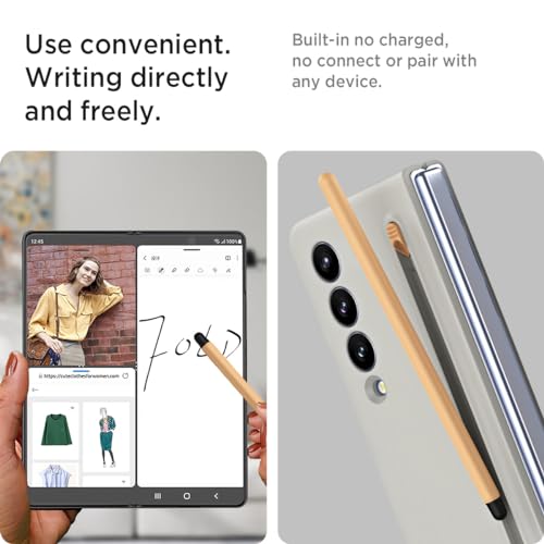 - [يتضمن قلم اس] يأتي جراب جالكسي زد فولد 4 الخاص بنا مع قلم اس. ما عليك سوى الضغط على الزر، يمكنك استخدام قلم اس للكتابة على شاشة جالكسي زد فولد 4، مادة السيليكون الناعمة والمرنة، الكتابة السلسة لن تخدش شاشتك. فتحة القلم في الغطاء الخلفي، مما يسمح لك بحمل قلم اس بشكل أكثر راحة وسهولة. [ملاحظة: قلم السيليكون ليس قلمًا أصليًا، بل مجرد قلم سيليكون.]