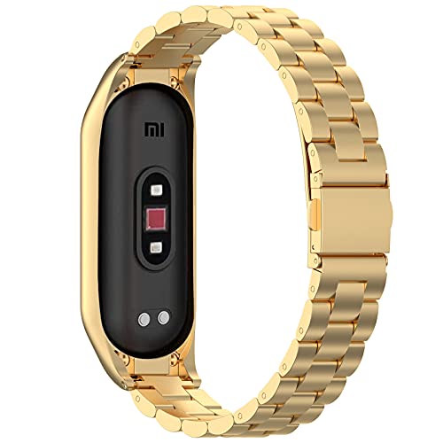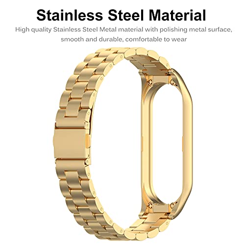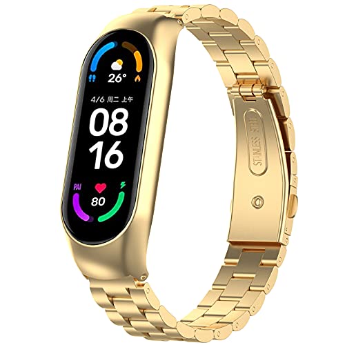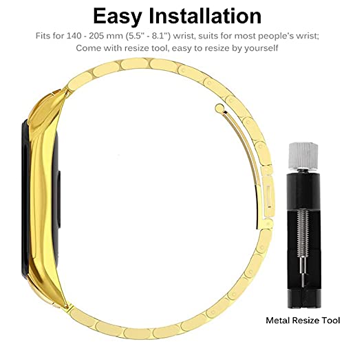 Miimall - سوار شاومي مي باند 6 5 من ميي مول ساعة معدني الستانلس ستيل الفاخر مع اطار اساور معصم رياضية بديلة متوافقة ذهبي للجنسين للبالغين