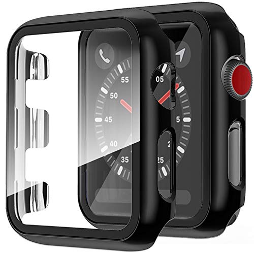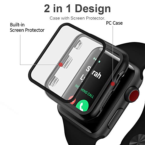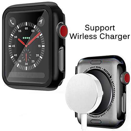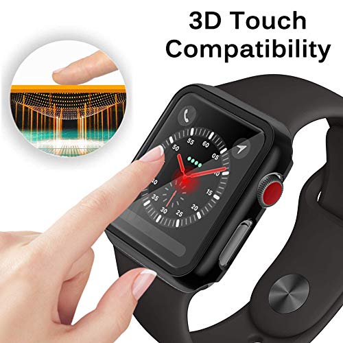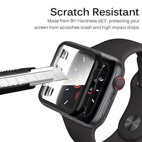 Miimall - ميي مول غطاء حماية كامل من الزجاج المقوى مقاوم للصدمات من البولي كربونات الصلب لساعة ابل 44 ملم اس اي سلسلة 6 5 4، أسود