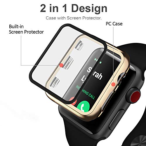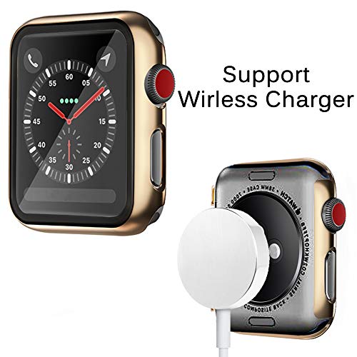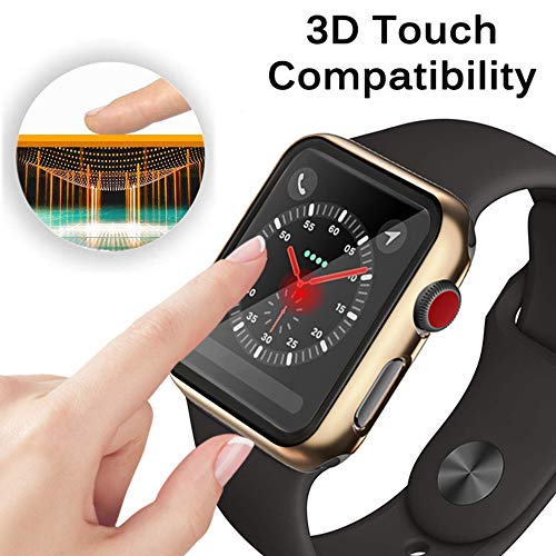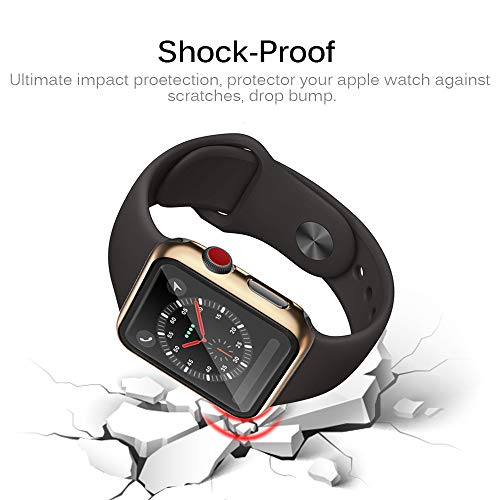Miimall - ميي مول غطاء صلب مضاد للخدش والصدمات وواقي شاشة من الزجاج المقسى من البولي كربونات لساعة ابل سلسلة 3 2 1 (40 ملم)، تيمبرد جلاس، ذهبي