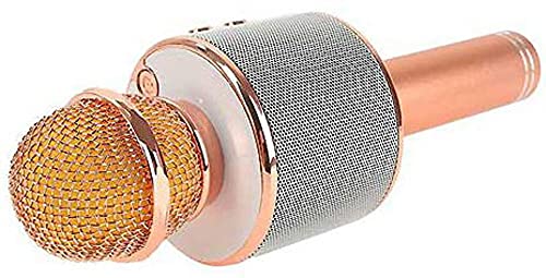Generic - ميكرفون كاريوكي للغناء بلون نحاسي مع بلوتوث وUSB ومشغل كيه تي في،WS858، بيج