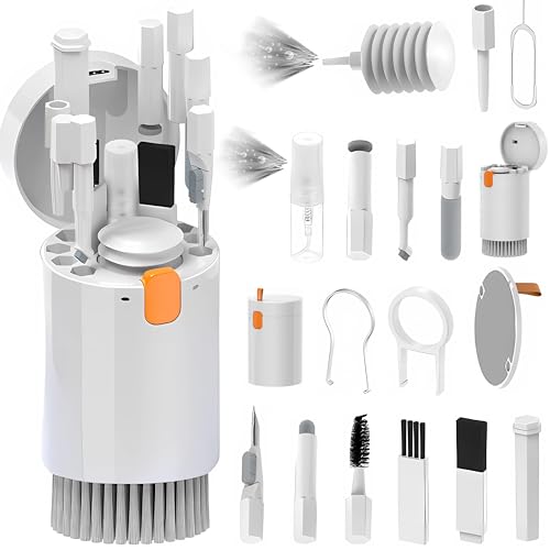 - مجموعة تنظيف مطوّرة 20 في 1: يمكن لمجموعة فرش تنظيف لوحة المفاتيح متعددة الوظائف تلبية متطلبات التنظيف الخاصة بك لمختلف المنتجات الإلكترونية. يحتوي منظّف لوحة المفاتيح على أداة سحب الأزرار وفرشاة للتنظيف الدقيق، ومنظّف سماعات مزوّد بقلم معدني وفرشاة صغيرة، ومنظّف عدسات بفرشاة ناعمة وزجاجة رش. كما يوفّر شريط التمديد الإضافي إمكانية إطالة مقبض الأدوات لتلبية احتياجاتك المختلفة.