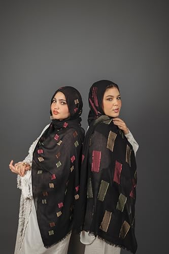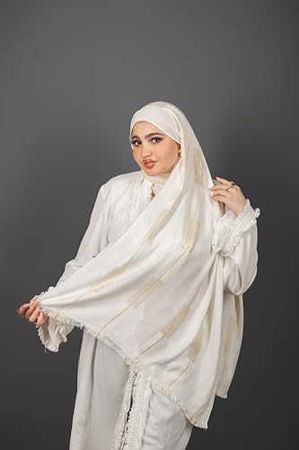 Mila - سكارف من القطن الإيراني المودال بنقشة مميزة للنساء من ميلا، هدية راقية للمناسبات الخاصة من قماش أنيق، اكسسوار مثالي لأي ملابس محجبات، المقاس 75 سم×2 م