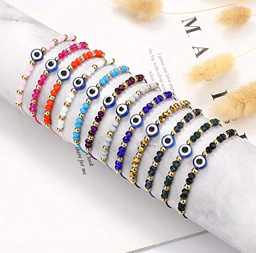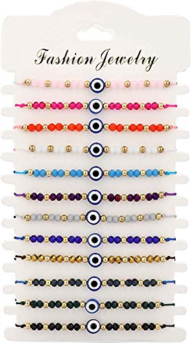 MILACOLATO - 12 قطعة من اساور العيون الشر مصنعة يدويا الملونة مع بطاقة سلسلة حمراء سوار Kabbalah حماية الحظ التعويذة للنساء الرجال الاسرة الاصدقاء