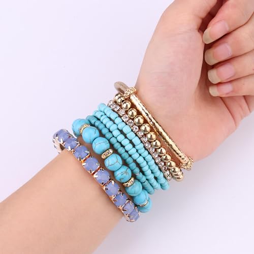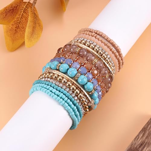 MILACOLATO - أساور قابلة للتكديس للنساء من ميلاكولاتو مجموعة 2-4 قطع خرز متعددة الطبقات حلقية للتمدد بنمط بوهيمي 4