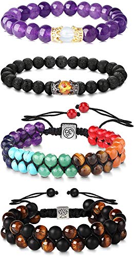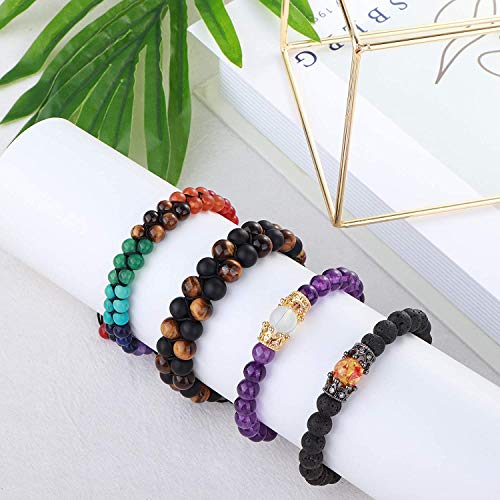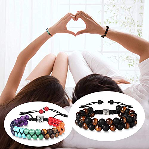 Generic - اساور تعبر عن صداقة الزوجان للرجال والنساء من ميلاكولاتو، اسوارة من صخور اللافا الطبيعية 8 ملم، 7 اساور شاكرز بطبقتين من الخرز النفاث للزيوت الاساسية مع حبل ربط مرن، اسوار له ولها، لون ارجواني