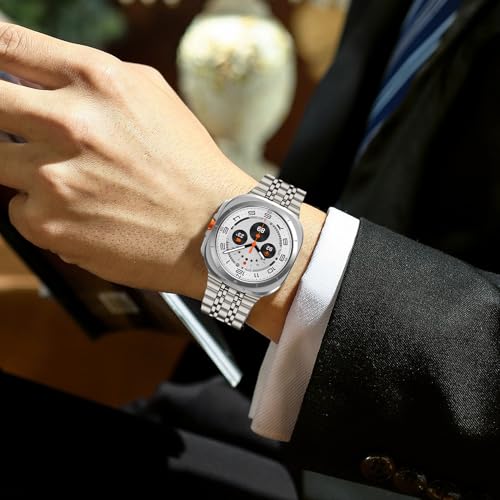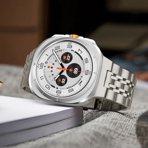 LEIXIUER - سوار معدني متوافق مع ساعة سامسونج جالكسي الترا مقاس 47 ملم للرجال، سوار بحلقات من الفولاذ المقاوم للصدأ لساعة جالكسي الترا