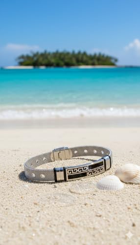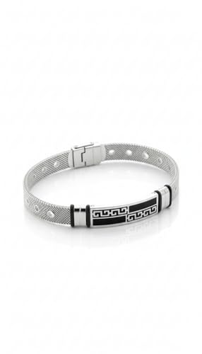 Generic - سوار ميلانو شبكي فاخر من الستانلس ستيل للرجال | لوحة مركزية سوداء مع مفتاح يوناني / متعرج | قفل قابل للتعديل ومقاوم للصدأ