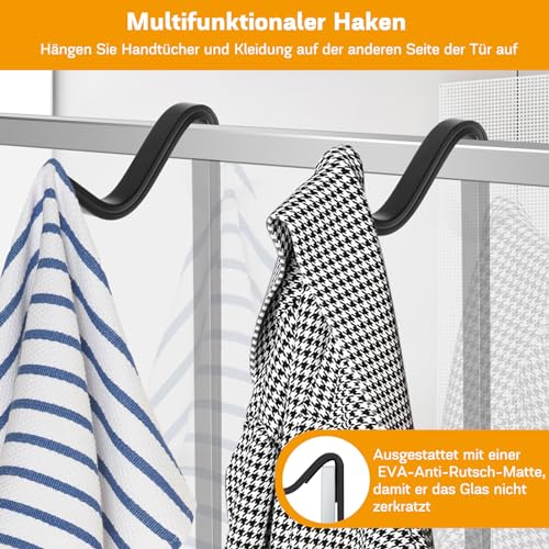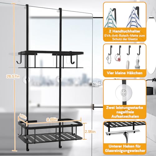 MILFECH - رف دش معلق من ميلفيتش مع سلتين للاستحمام مقاس 70 × 25 سم الستانلس ستيل لباب زجاجي بدون اطار خطافات للشامبو وجل الاستحمام اسود