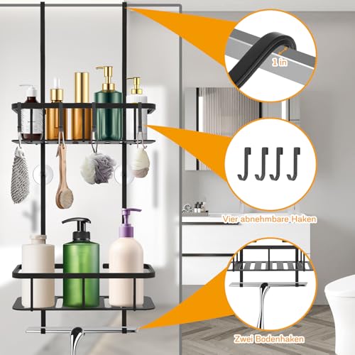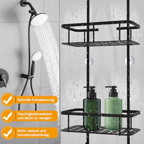- 【قم بزيادة مساحة حمامك】رف تعليق الحمام الخاص بنا هو حل تخزين متعدد الاستخدامات وعملي للاستحمام. مع طبقتين وسعة كبيرة، فإنه يوفر مساحة كبيرة لجميع مستلزمات الاستحمام الخاصة بك مثل جل الاستحمام والشامبو والبلسم والمقشر والتونر وغيرها من الأشياء.