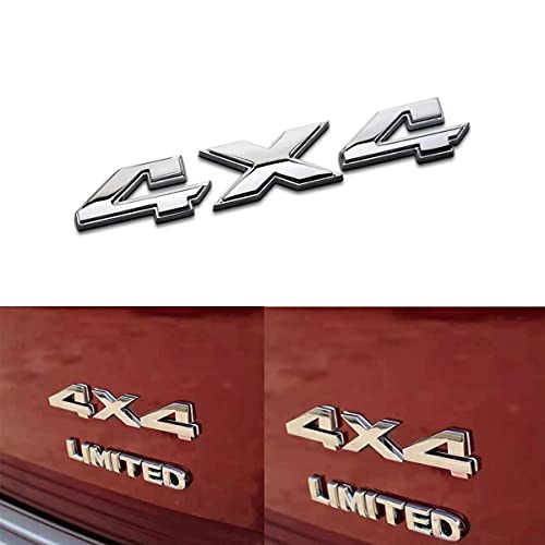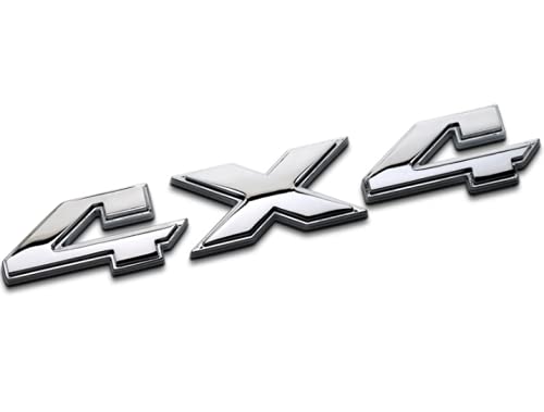Milicoop - شعارات 4 × 4 ملصق لوحة معدنية ثلاثية الأبعاد لشاحنة الباب الخلفي / سيارة الدفع الرباعي/التقاط ، 4 × 4 شعارات للشاحنات (فضي)