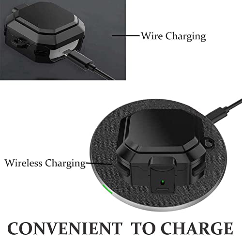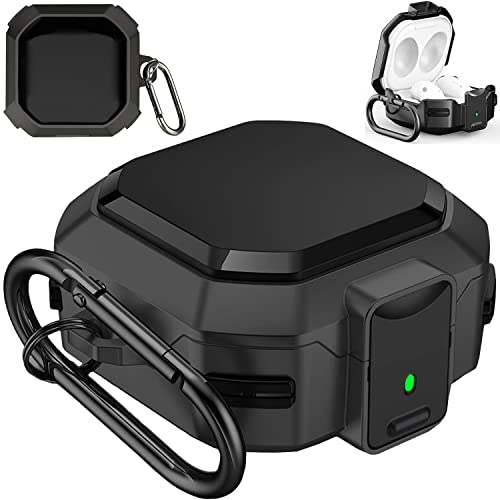 voma - جراب عسكري ارمور مع قفل امن لسامسونج جالاكسي بادز برو 2 وجراب بودز برو وجراب بودز لايف وبودز 2 بغطاء صلب لكامل الجسم للرجال والنساء مع سلسلة مفاتيح، لون أسود