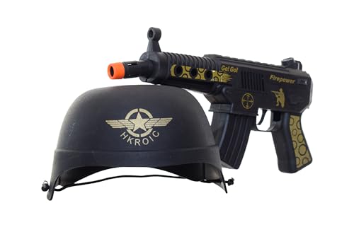 - مجموعة لعب محاكاة العسكري مكونة من خوذة وبندقية قطعتين أسود