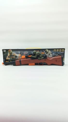 - تصميم واقعي: بندقية لعبة على الطراز العسكري تتميز بلمسة نهائية من الخشب البني الأصلي وهيكل مفصل للعب الخيالي