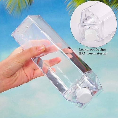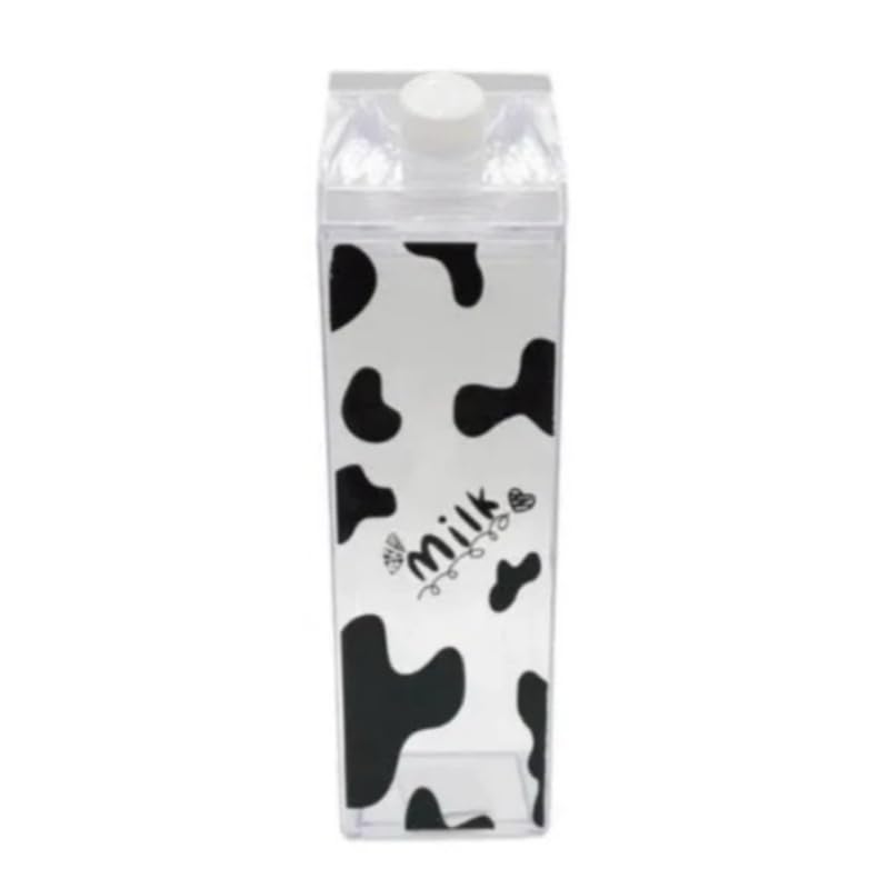 Generic - زجاجة مياه بتصميم كرتون ميلك، 1000 مل، خالية من البيسفينول ايه، مانعة للتسرب، شكل مربع، شفافة
