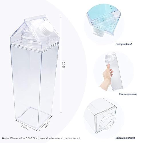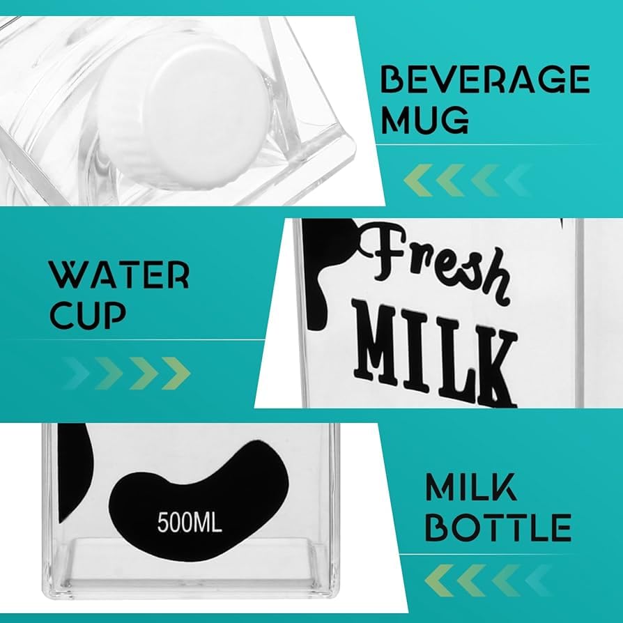 - السعة: سعة كبيرة 1000 مل (33 اونصة) مثالية لاحتياجات الترطيب اليومية، تتميز بتصميم على شكل كرتون حليب مع هيكل أكريليك شفاف