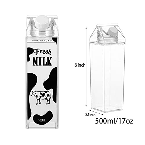 - 【زجاجة مياه ميلك كارتون شفافة】كل حاوية لطيفة محمولة تسع 500 مل من الماء أو العصير أو القهوة أو السوائل الأخرى. تتناسب بشكل جيد مع شنطة الظهر أو شنطة اليد أو أي مكان آخر تحتاج فيه إلى إحضار زجاجة مياه، وستكون إضافة رائعة للجري والرياضة والقيادة والتجمع مع الأصدقاء لشرب الماء.