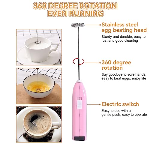 Generic - صانع رغوة الحليب والقهوة، خفاقة كهربائية صغيرة محمولة للمطبخ، خلاط مخفوق الحليب والبيض والقهوة من الفولاذ المقاوم للصدأ، اداة لتقليب القهوة يعمل بالبطارية (وردى)