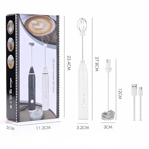 Generic - اداة خفق الحليب وخفق البيض - خلاط يدوي من الستانلس ستيل ومضرب البيض، مضرب كهربائي مع 3 سرعات تحكم للقهوة واللاتيه والكابتشينو والشوكولاتة الساخنة، K-61 (ابيض)