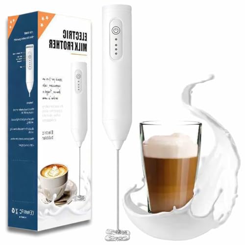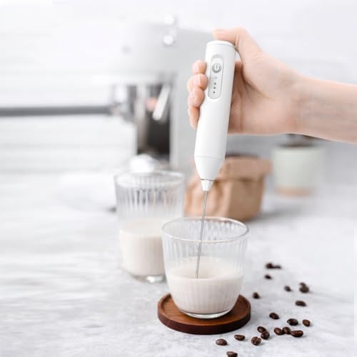 Generic - ماكينة صنع رغوة الحليب المحمولة باليد، قابلة لاعادة الشحن عبر USB بـ3 سرعات قابلة للتعديل، خلاط مشروبات من الستانلس ستيل للقهوة واللاتيه والكابتشينو والماتشا والشوكولاتة الساخنة - ابيض