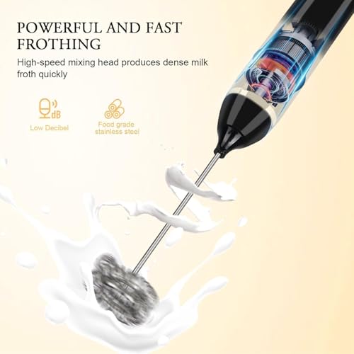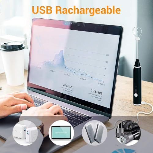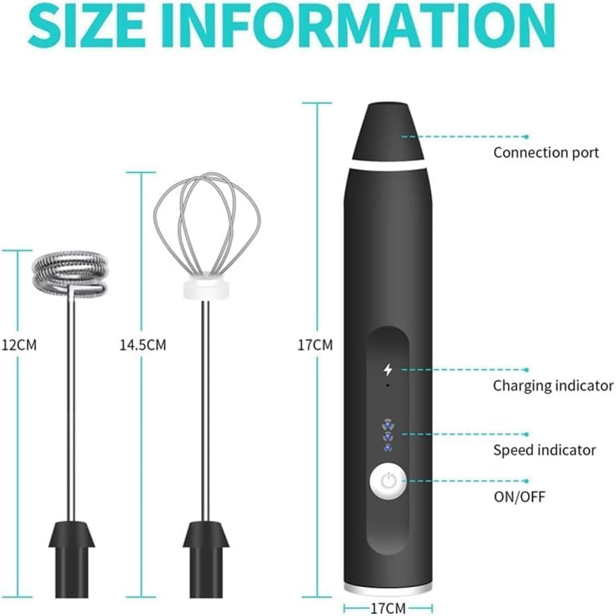 Generic - ماكينة صنع رغوة الحليب المحمولة باليد قابلة لاعادة الشحن بمنفذ USB مع خفاقتين من الستانلس ستيل و3 سرعات قابلة للتعديل للكابتشينو والشوكولاتة الساخنة والميلك شيك ومزيج البيض (اسود- ابيض)