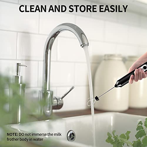 FYIN-HONG - أداة خفق اللبن محمولة وقابلة لإعادة الشحن بمنفذ USB مع 2 مضرب من الفولاذ المقاوم للصدأ، مضرب كهربائي صغير بـ 3 سرعات قابلة للتعديل للقهوة واللاتيه والكابتشينو والشوكولاتة الساخنة والبيض، أسود