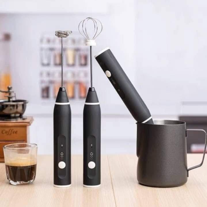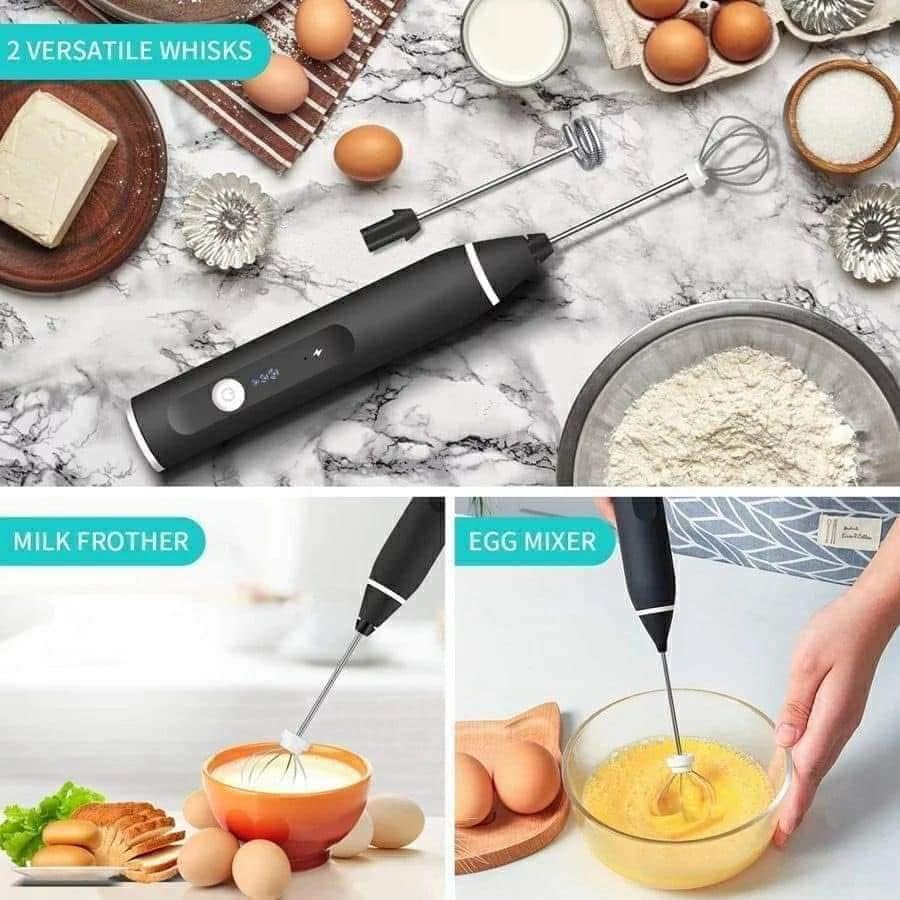 Generic - ماكينة صنع رغوة الحليب الكهربائية القابلة لاعادة الشحن بمنفذ USB - 2 خفاقة من الستانلس ستيل، مضرب بيض محمول باليد وخلاط قهوة صغير للكابتشينو والشوكولاتة الساخنة والميلك شيك ومزيج البيض