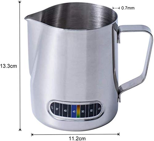 Discountown - لبانة صنع رغوة اللبن سعة 600 مل مع ميزان حرارة، كوب بخاري صانع رغوة الاسبريسو مثالي لماكينة تحضير الاسبريسو وفن عمل الكابتشينو لاتيه، الة قهوة للعائلة والمكتب والمحال التجارية