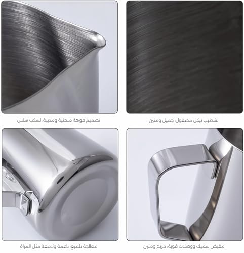 - تصميم فريد من نوعه: شفشق محمول باليد مع فوهة ضيقة لصب دقيق وفن صناعة لاتيه مثالي.