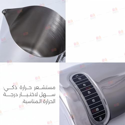 - ملصق ميزان الحرارة: قم بقياس درجة حرارة السائل للحصول على رغوة وتدفئة مثاليين.