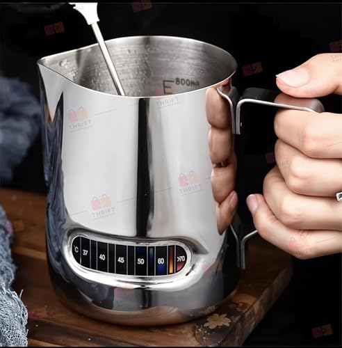 Generic - شفشق لصنع رغوة الحليب مع ميزان حرارة لصنع رغوة الاسبريسو، لماكينة تحضير اسبريسو وفن اللاتيه والكابتشينو والمكتب والأسرة، ملحقات القهوة (600 مل)