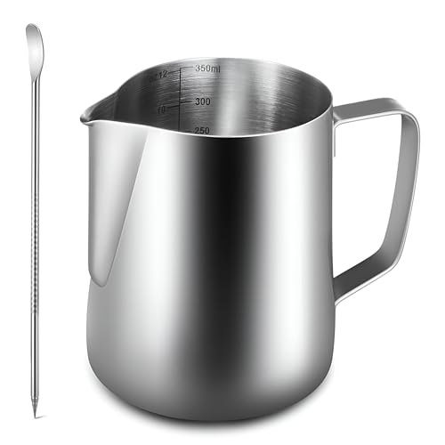 Generic - شفشق إبريق للبن من الفولاذ المقاوم للصدأ بسعة 350 مل لصنع الرغوة والتبخير مثالي لصنع القهوة والكابتشينو، قطعتان