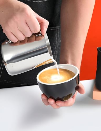 - يتميز إبريق الحليب بسعة 350 مل أو 12 اونصة، مما يجعله بحجم مثالي لصنع رغوة الحليب لكوب أو كوبين من القهوة أو الكابتشينو أو اللاتيه. تسمح علامات القياس داخل الإبريق بالتحكم الدقيق في كمية الحليب المستخدمة، مما يضمن الاتساق في كل مشروب تم إعداده.