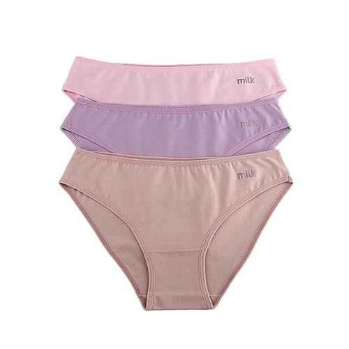 Milk - طقم ملابس داخلية بانتي بيكيني سادة بالوان متعددة مقاس L للنساء من ميلك - عبوة 3 قطع - MB-49-BK-L متعدد الألوان قطن