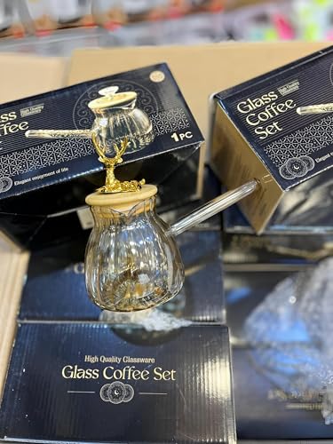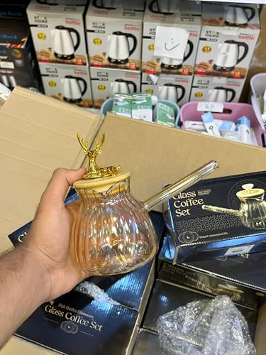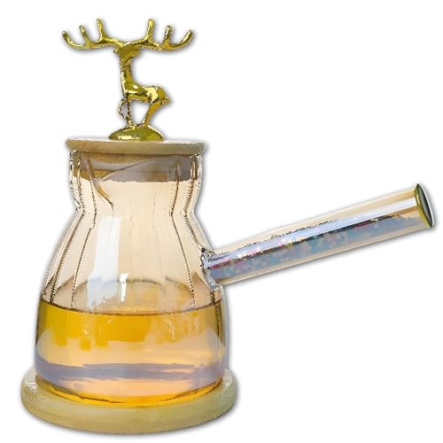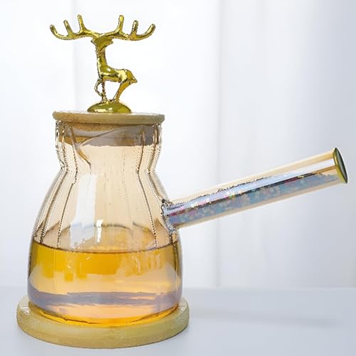 Generic - كنكة زجاجية شفافة متينة مصممة للحرارة المباشرة بغطاء من الخشب الطبيعي ومجسم غزال مبهج لتسخين الحليب وتحضير القهوة على الطريقة التركية مع بساطة ساحرة