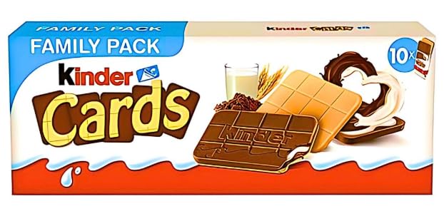 - تجربة شوكولاتة فريدة: كيندر كاردز تجمع بين طبقات الويفر المقرمش والشوكولاتة اللذيذة مع حشوة كريمية غنية بالحليب لمذاق لا يقاوم
