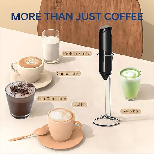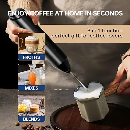 - استمتع بمشروبك الرغوي: هل ترغب في الاستمتاع بكوب من الكابتشينو مع بخار رغوي دون الخروج من المنزل؟ تمنحك أداة خفق الحليب هذه الفرصة لتحضير مشروبات سميكة ورغوية في المنزل في أقل من دقيقة، مما يجعلها مثالية لمحبي القهوة الذين يقدرون الراحة.