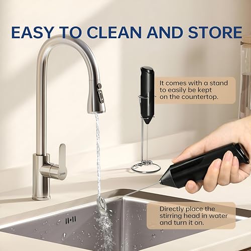- سهل الاستخدام: تم إعادة تصميم جهاز خفق الحليب للعمل بضغطة زر واحدة. لا يتطلب الأمر أي خطوات معقدة، مما يجعله في متناول كبار السن والأطفال على حد سواء. للتنظيف، ما عليك سوى وضعه في الماء والضغط على الزر وتركه يدور لسهولة الصيانة.