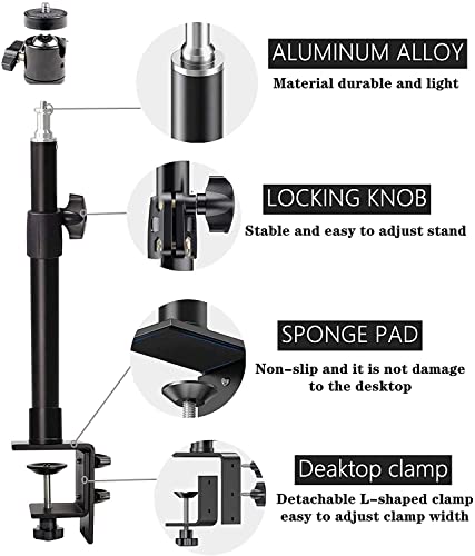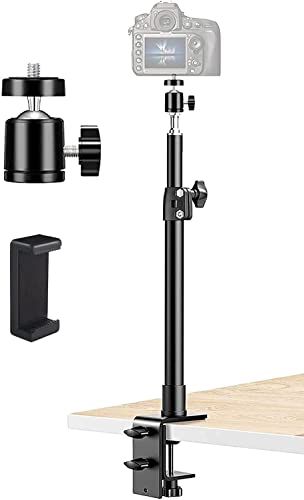 MILLETS - حامل كاميرا يثبت على الحائط برأس كروي قابل للدوران 360° لكاميرا دي اس ال ار/ ويب/ ضوء فيديو حلقي مشبك للتعديل لسطح طاولة ألومنيوم 12-20 بوصة للمكياج والبث المباشر والتقاط الصور والفيديو من ميليتس أسود