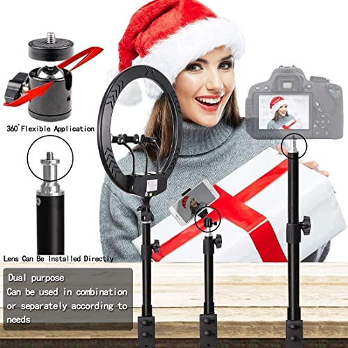 - توافق متعدد: الجزء العلوي مصمم ببراغي قياسية 1/4 بوصة. مع رأس كروي معدني بزاوية 360 درجة. الحد الأقصى للوزن الذي يمكن أن يتحمله الحامل هو 4.5 كيلو جرام ويمكنه دعم معظم معدات الإضاءة الفوتوغرافية، مثل المصابيح الحلقية ومصابيح الفيديو ليد وحوامل الهواتف الذكية وكاميرات اس ال ار الرقمية