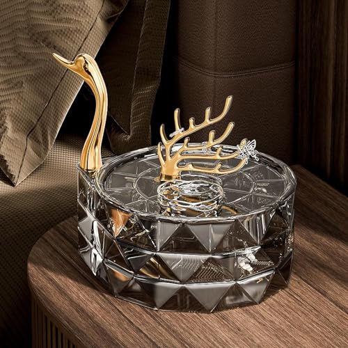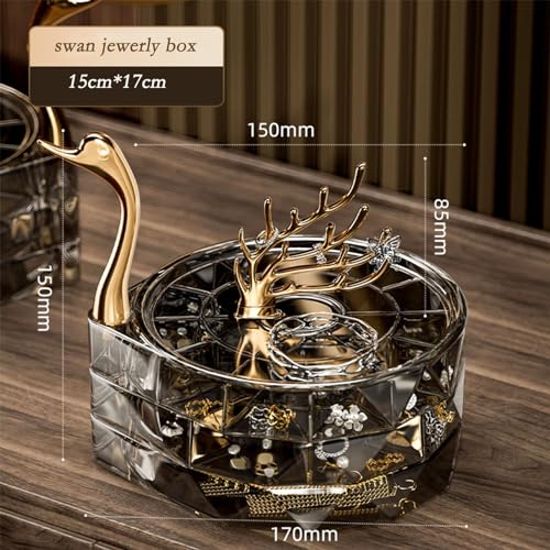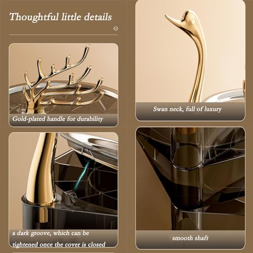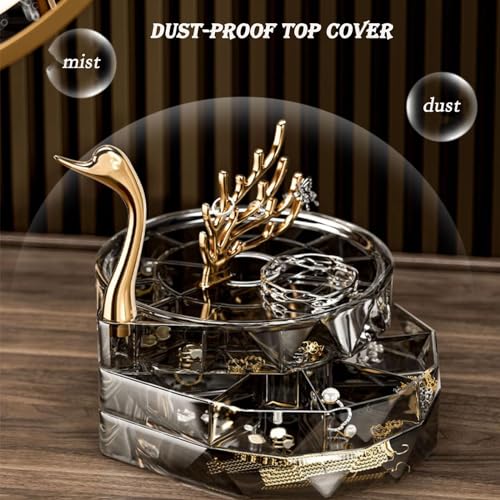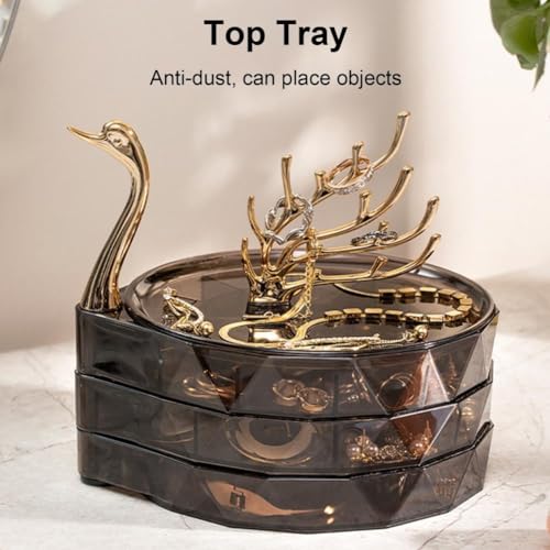 MILLTO - صندوق منظم مجوهرات من ميلتو اكريليك شفاف 3 طبقات حافظة عرض مقاومة للماء والغبار مع غطاء علبة صينية دوارة للخواتم والحلقان والأساور بجعة أسود