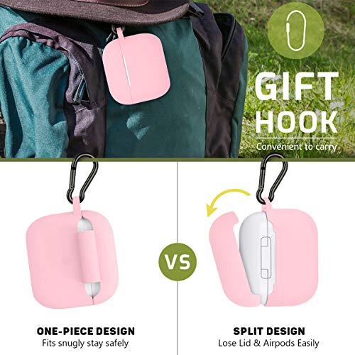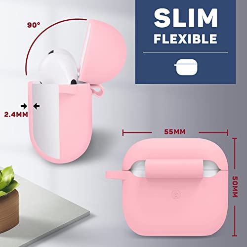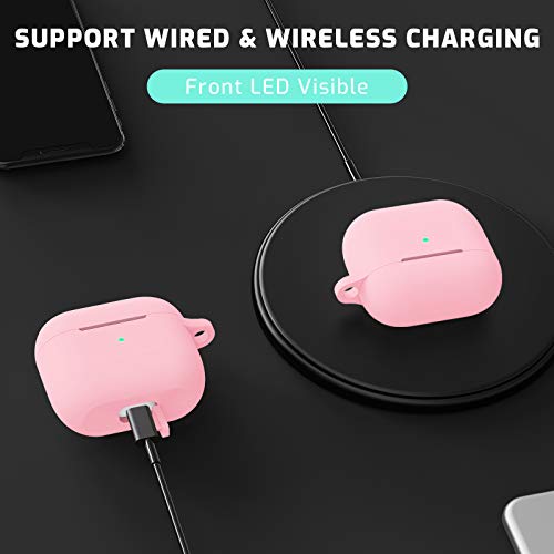 MILPROX - ام اي ال بي ار او اكس جراب حماية لسماعات ايربودز مع سلسلة مفاتيح [مصباح LED امامي مرئي] جراب رفيع ناعم مضاد للصدمات لحافظة شحن ايربودز [اصدار 2021] - بينك، سيليكون، زهري، لسماعات رأس